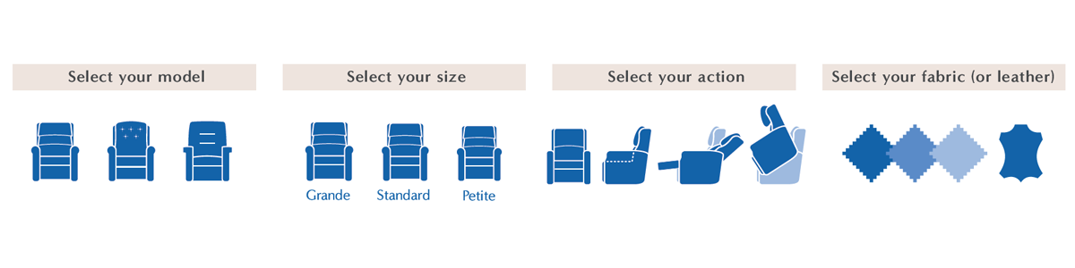Available on all chair sizes in the Ashfield, Canterbury, Farndon, Hollingwell, Southwell, Westbury and Woburn Single Motor powered, Dual Motor and Cloud Zero Riser Recliners.